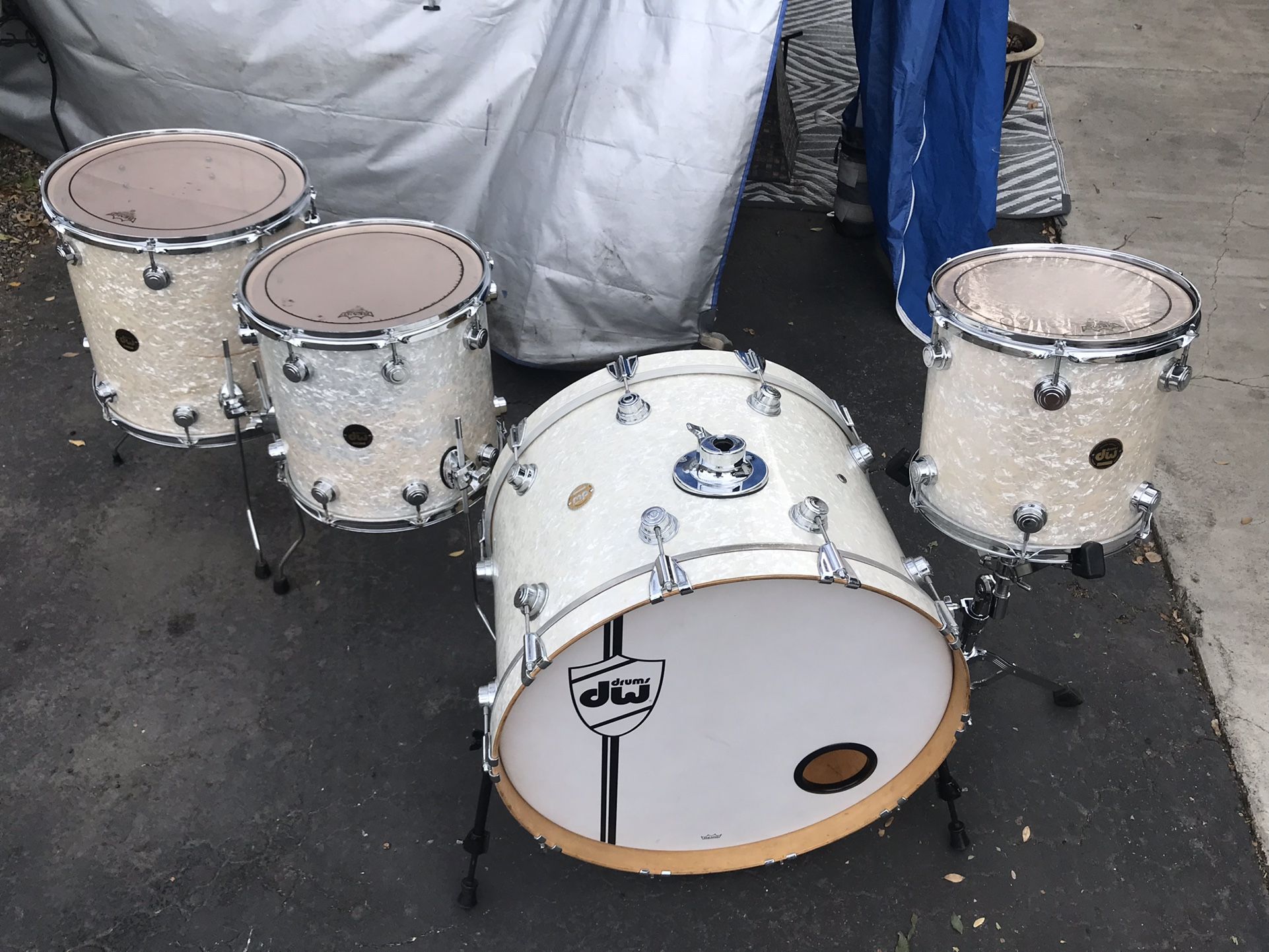 This is a great sounding kit with a Booming kick drum. The cool thing is the floor toms are a 14 x 14” and a 16 x 16”. Serial numbers are sequencial. Edges and interiors are mint. This is an older set. A Beefy drum kit !