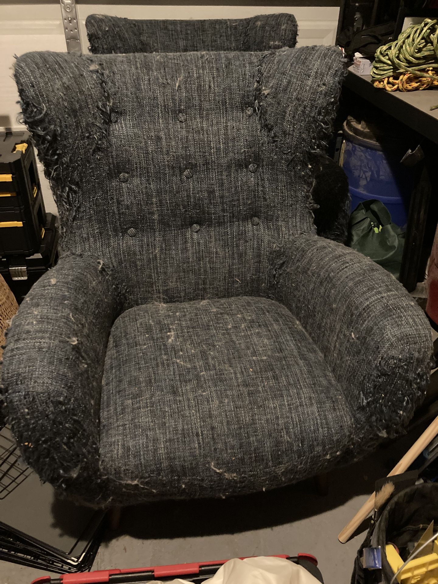 Comfy cozy pair of armchairs, perfect for snuggling with a book, blankets and a cup of tea! There’s thread damage (example pictures) and cat hair, so will need some TLC, but structurally solid! Price is $75 for each chair, obo.