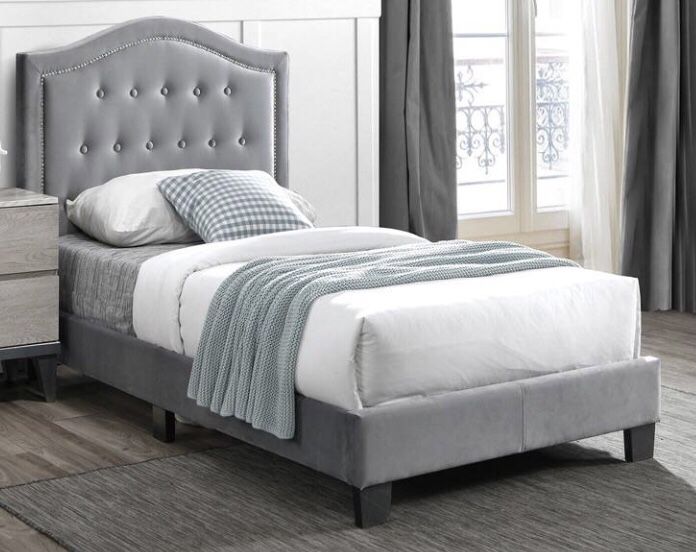 New sealed twin size tufted nailhead trim upholstered platform bed with new orthopedic medium firm bamboo top spring mattress included Colors: gray, dark gray, brown Delivery services $ COD Assembly available $ Financing available Hablamos español