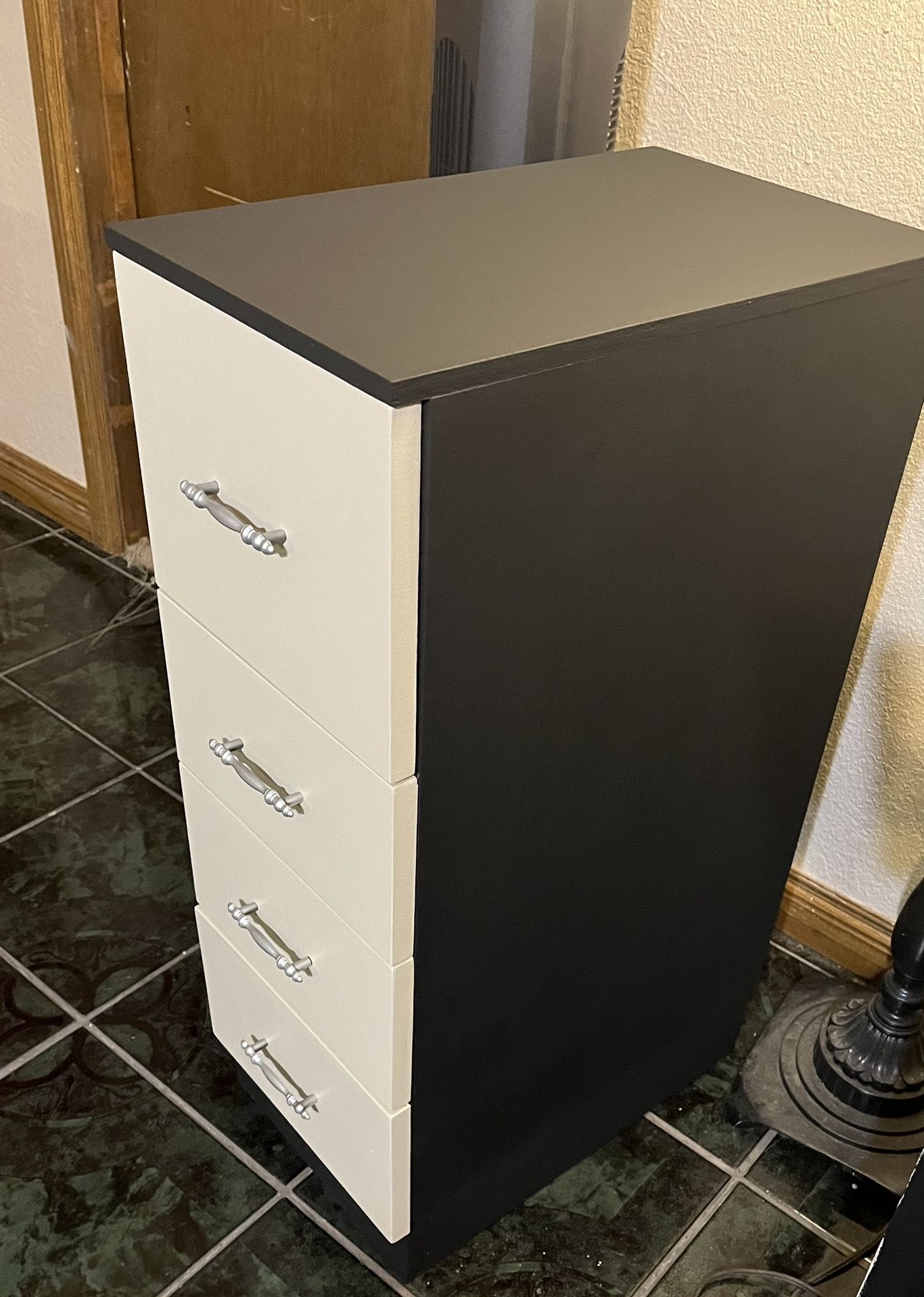Beautiful multicolored 4 cabinet lightweight solid wood. Measures: 11x18x31 inches