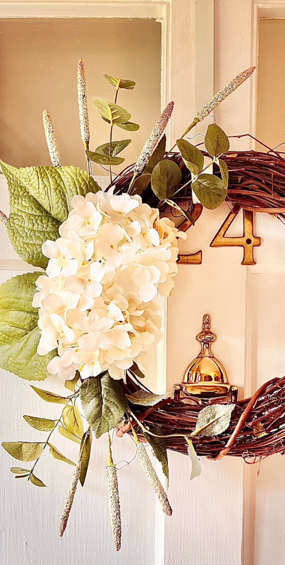 This beautifully handcrafted wreath with its gorgeous silk hydrangeas, will brighten your door now and year-round.