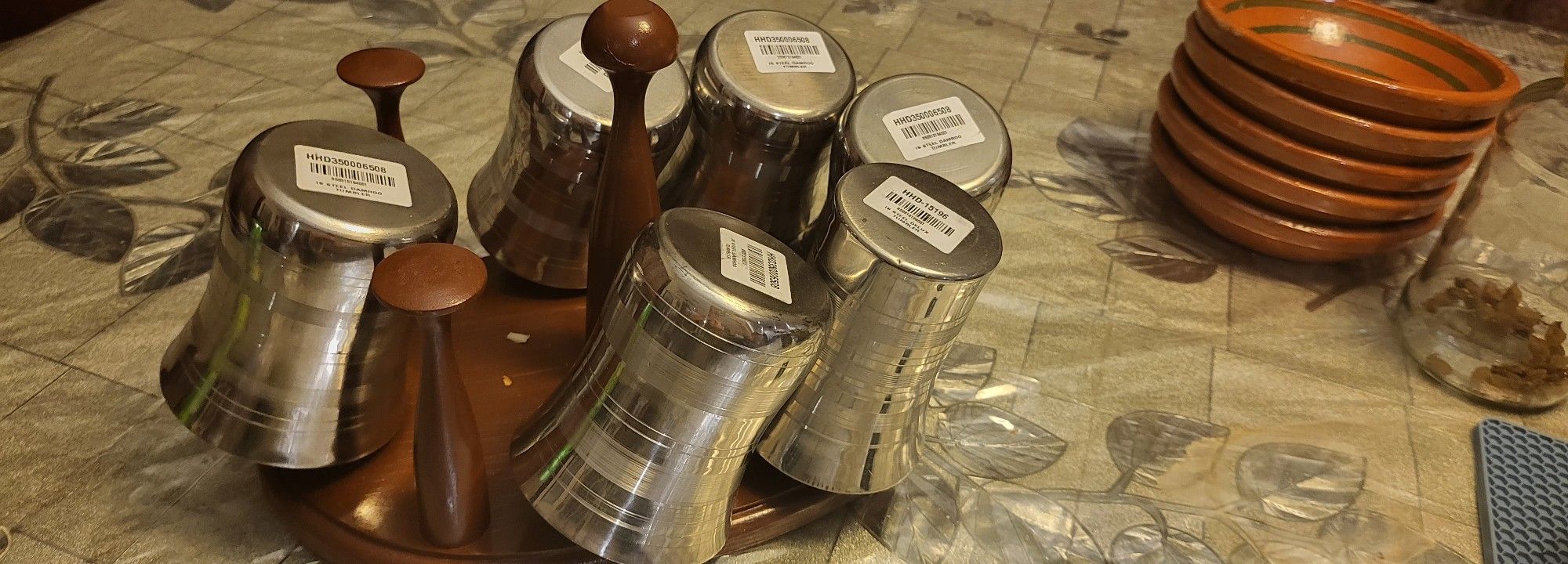 6 Cups Of Stainless Steel Cups Wi5h Stand