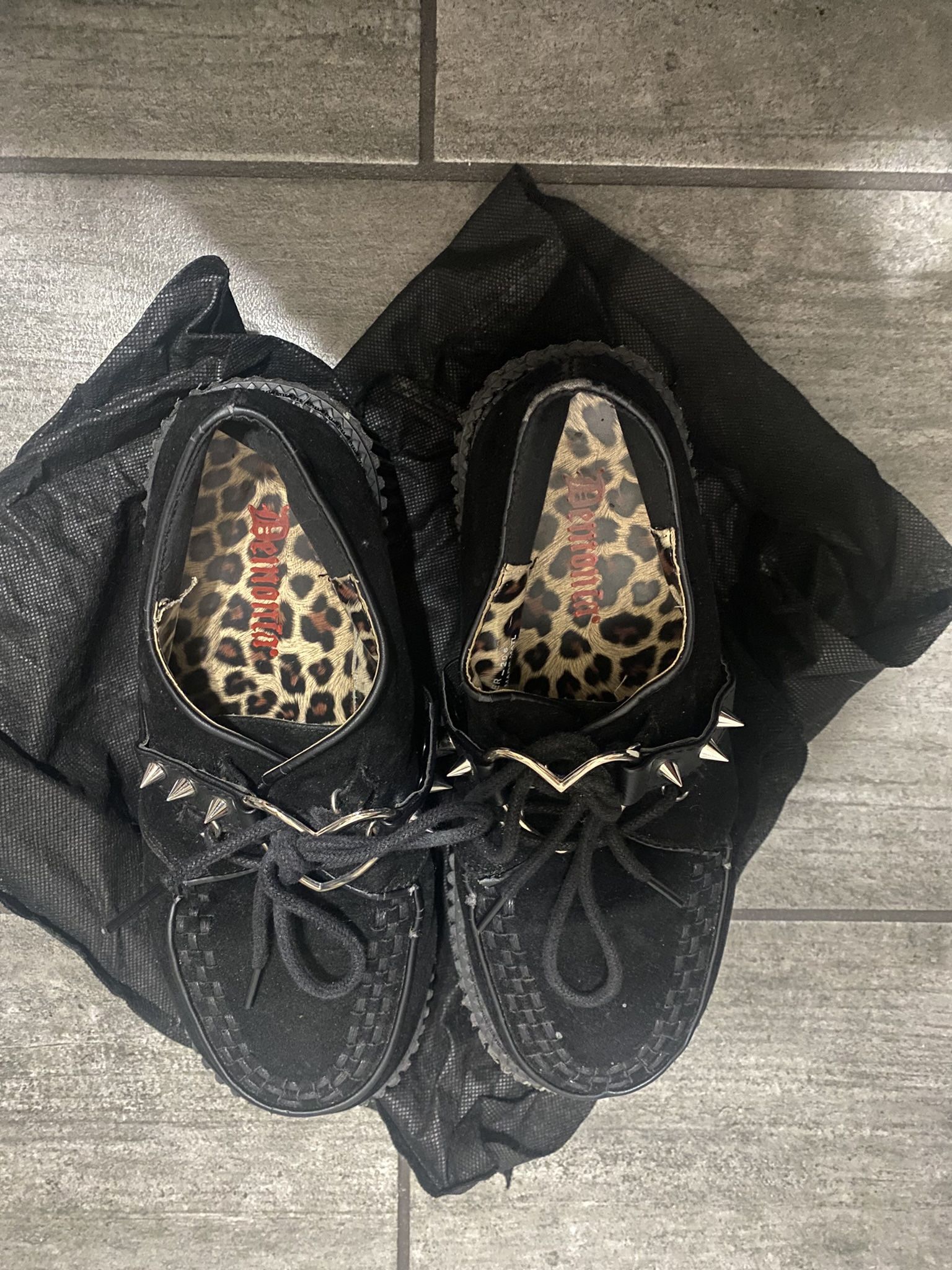Lightly worn creepers shoes from DEMONIA CULT shoes Women size:10 Super CUTE heart with spikes on each shoe. Nothing wrong with them. Well kept in bags that were bought in. Suede sort of material. NEED SOLD SOON. Pickup or meetup.