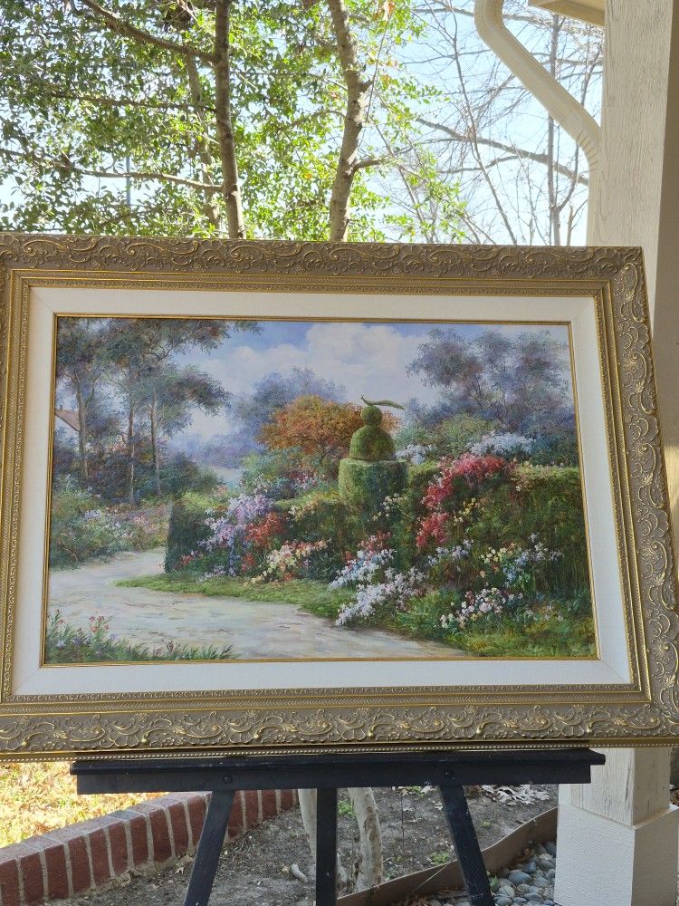 35" x 46" Absolutely stunning painting by Henry Marcus Moran (1877–1960) Henry Marcus Moran (1877–1960) Was An American painter known for traditional fine art styles. Born in Arkansas in August 1876. Moran was a resident of Pasadena in 1900, Alameda in 1906-10 and Brooklyn, NY in 1930 Style & Subjects: He specialized in portraiture, still lifes, and landscapes. Notable Works: His paintings include subjects like the Empire State Building and various floral scenes. His oil paintings, such as Pool in Elysium, occasionally appear at auctions like Christie's . This painting is absolutely beautiful to behold and will make a focal centerpiece in your home, office or entryway/ Grand foyer. In great condition $1200 . CASH only at time of pick up