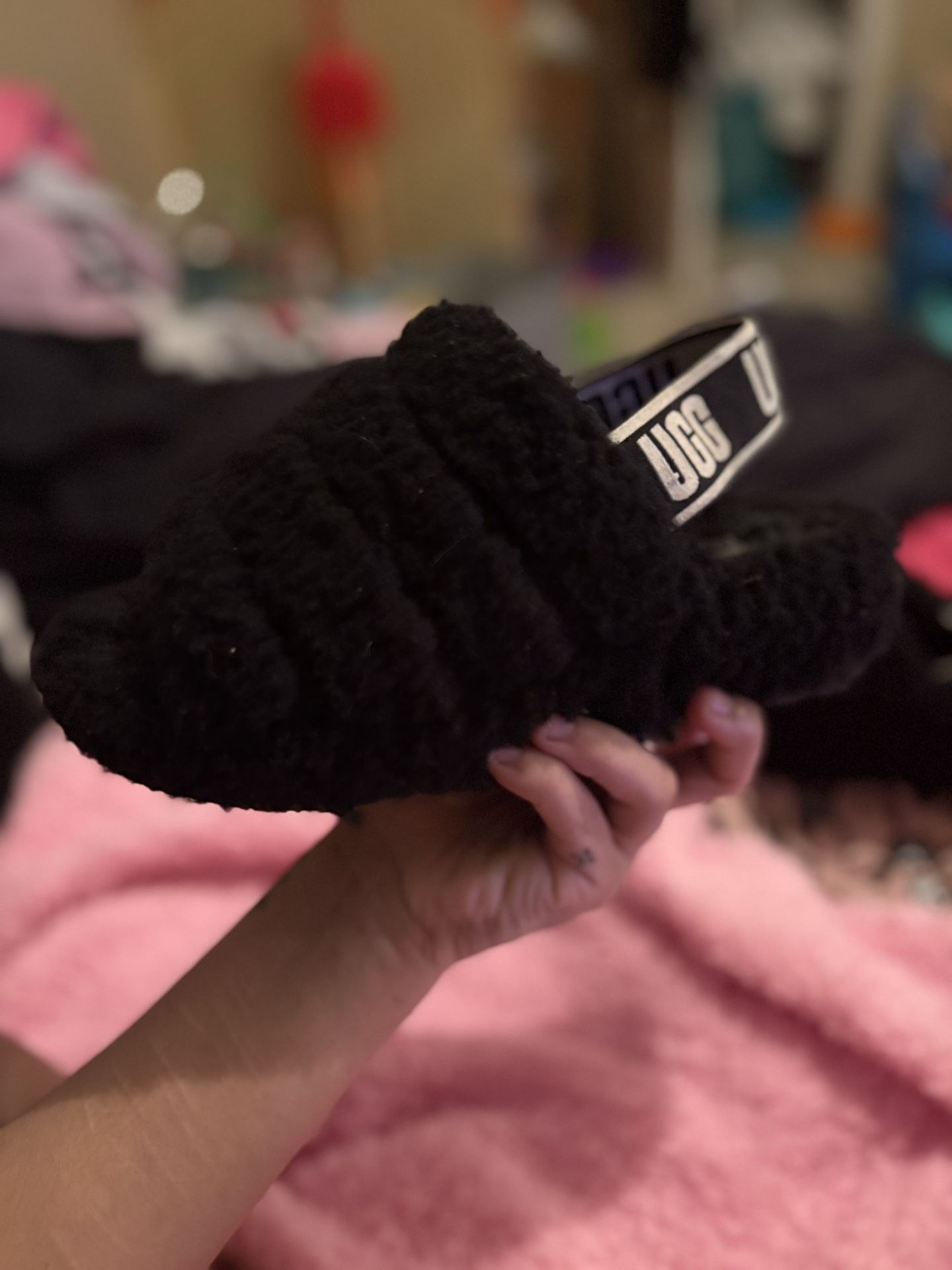 Black platform Ugg slides. size 6 , normal wear