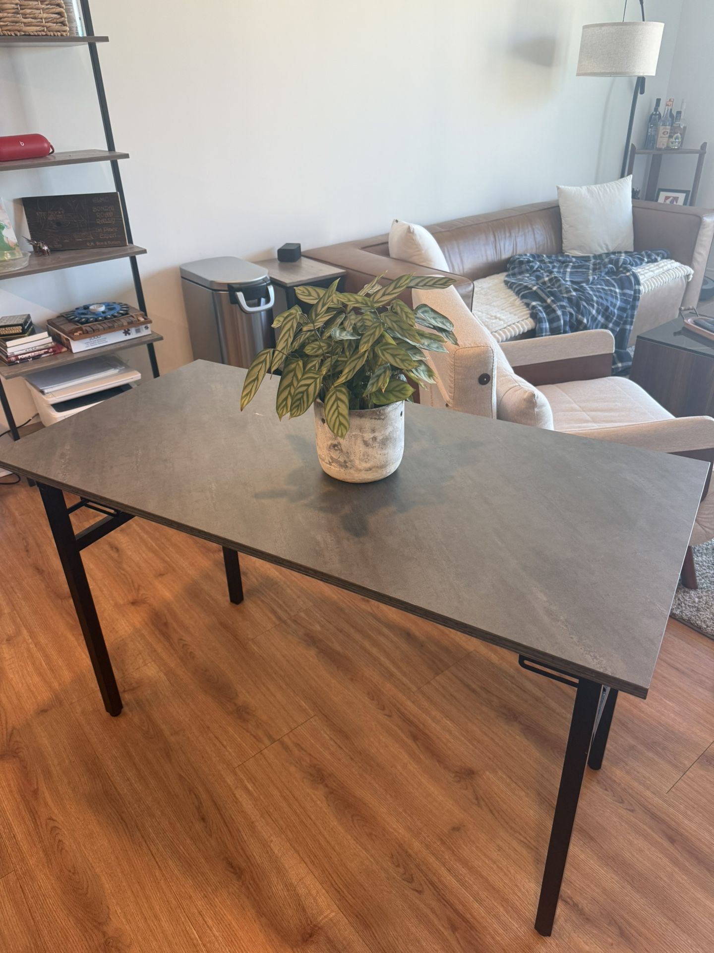 Foldable table. Dimensions are 45.5W x 23.5D x 29.5H.