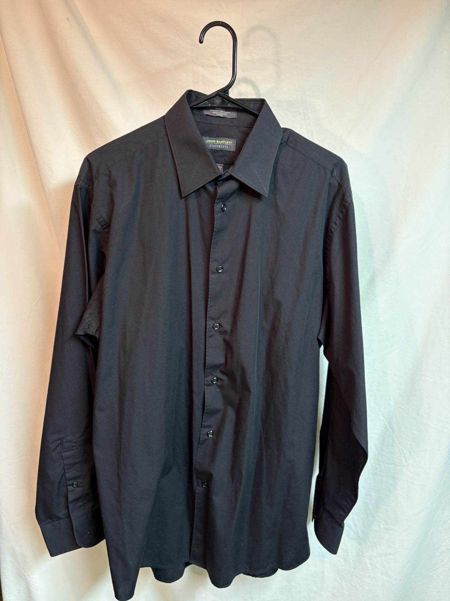 Men’s John Bartlett statements, long sleeve, button-down shirt, Black, size large 16-16 1/2 34/35