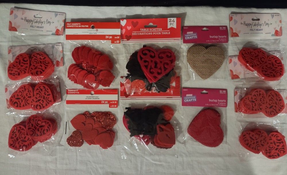 12 brand new packages of hard felt & burlap hearts Can be used for any craft projects