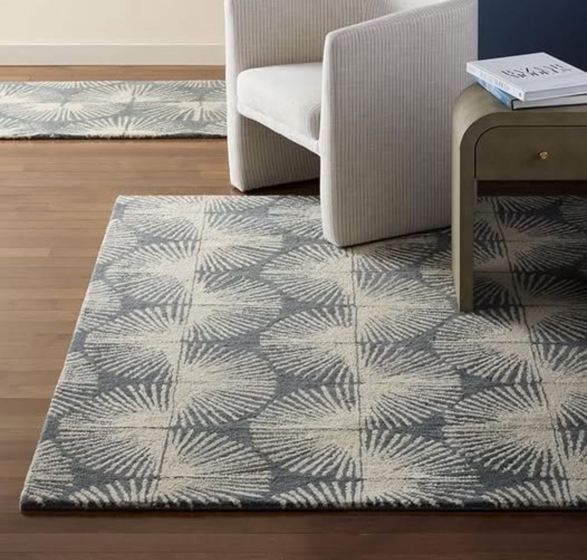 Brand new, never used - This stylish area rug is perfect for adding a touch of mid-century modern design to any room in your home. Handmade in India with 100% wool and a cotton blend backing for durability, this rug features a fluted geo design. The neutral tones will complement a variety of decor styles. Retails for $375 and this one has never been touched, as it was leftover from an event and wasn't needed after all. Dimensions: 6' x 9' Weight: 41 lbs šMetric and Braker in Austin