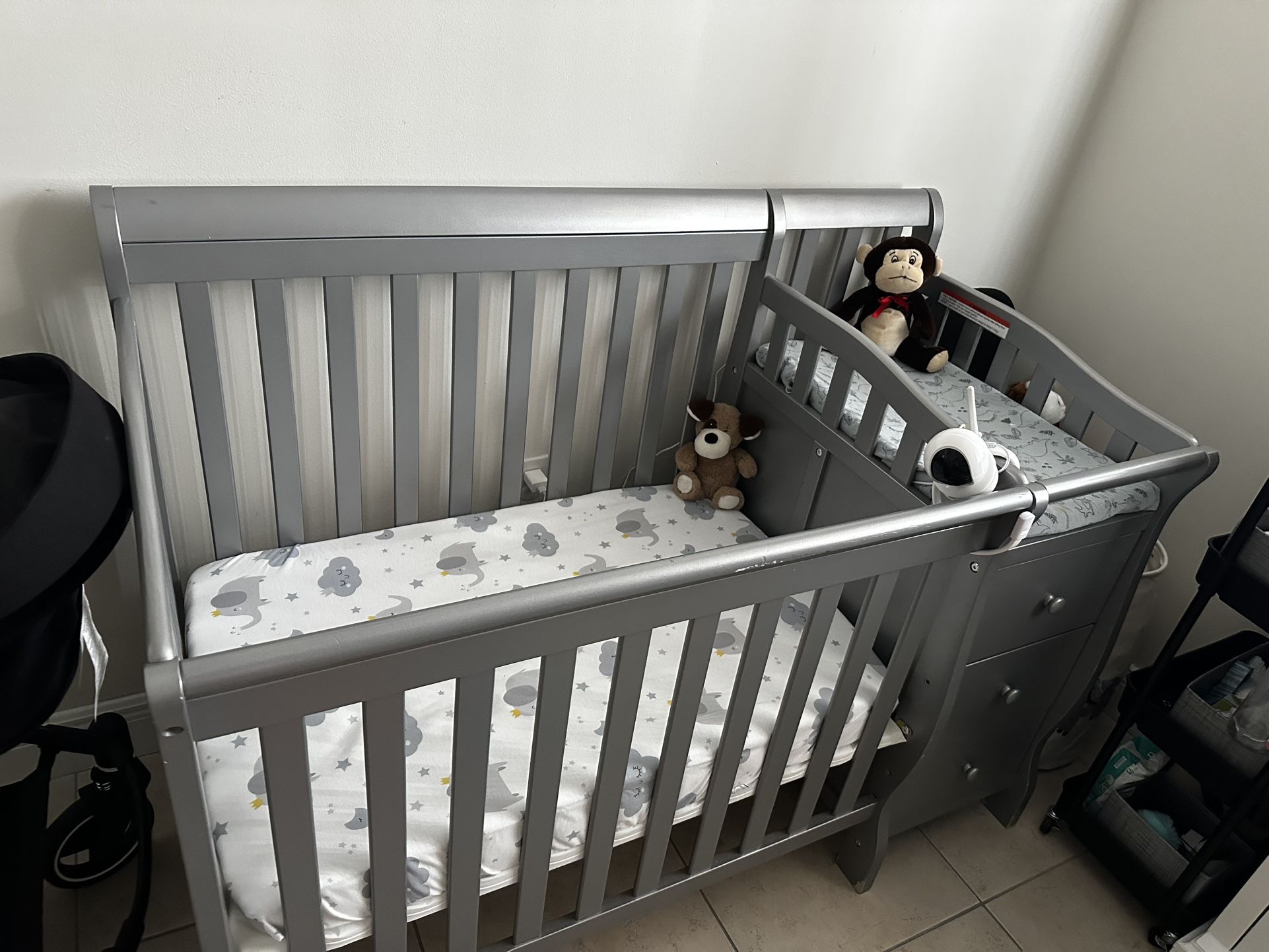 Convertible Mini Crib Dimensions 56.75"L x 29"W x 41"H. SELLING WITH THE MATTRESS . The Jayden comes with a detachable 3-drawer changing table, equipped with a changing pad and restraining strap with an easy release buckle to keep your baby safely secured. The Jayden 4-in-1 Mini Convertible Crib and Changer grows along with your child. Starting as a crib, you can convert it into a mini daybed and twin-size bed. It has some minor scratches