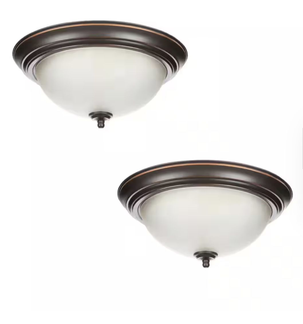 13 in. 2-Light Oil Rubbed Bronze Flush Mount with Frosted Glass Shade Set of 2 One was used while we waited for the permanent light fixture to go in and the other is new in the box