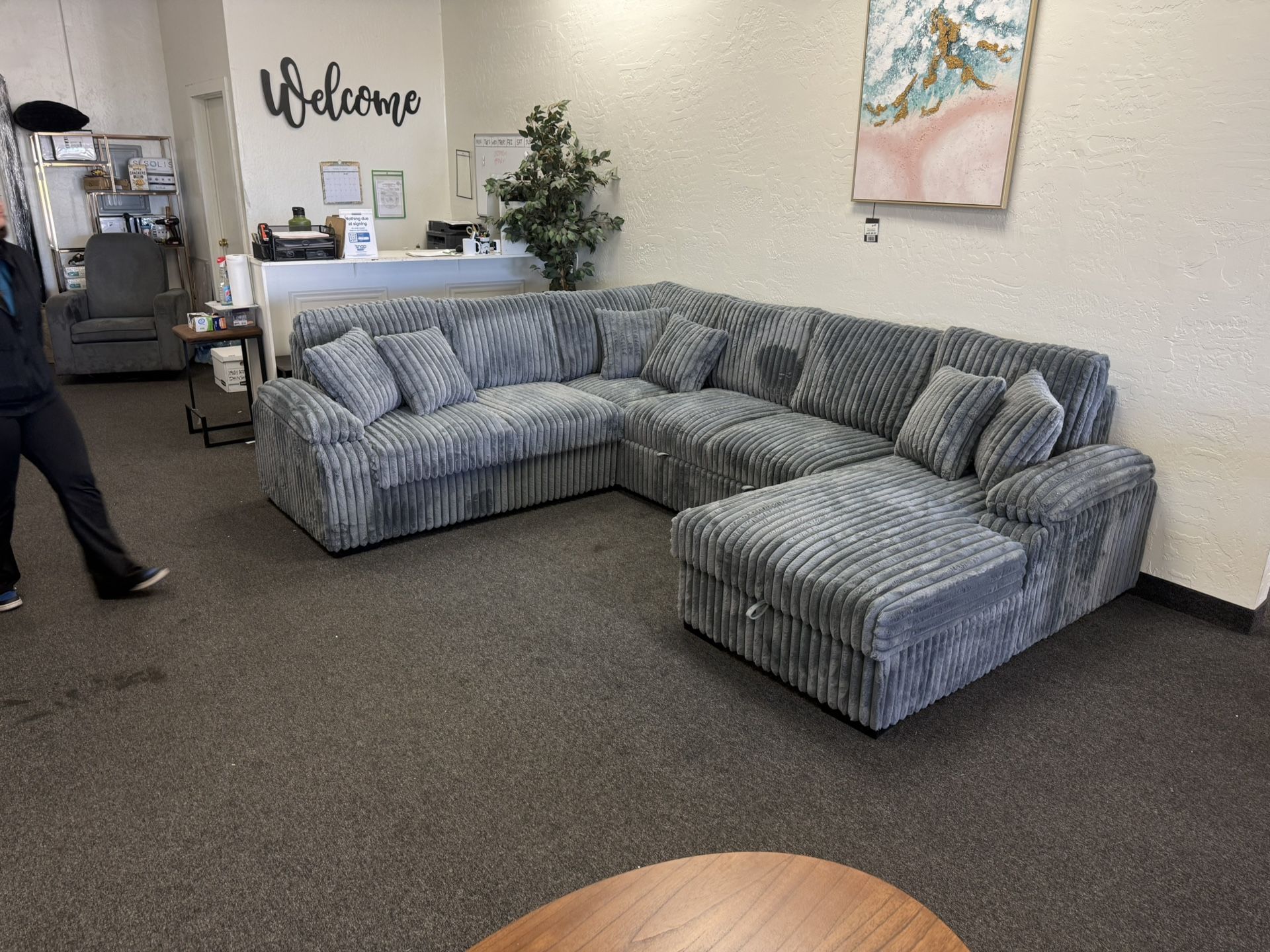 Sleeper Sectional In Gray Corduroy
