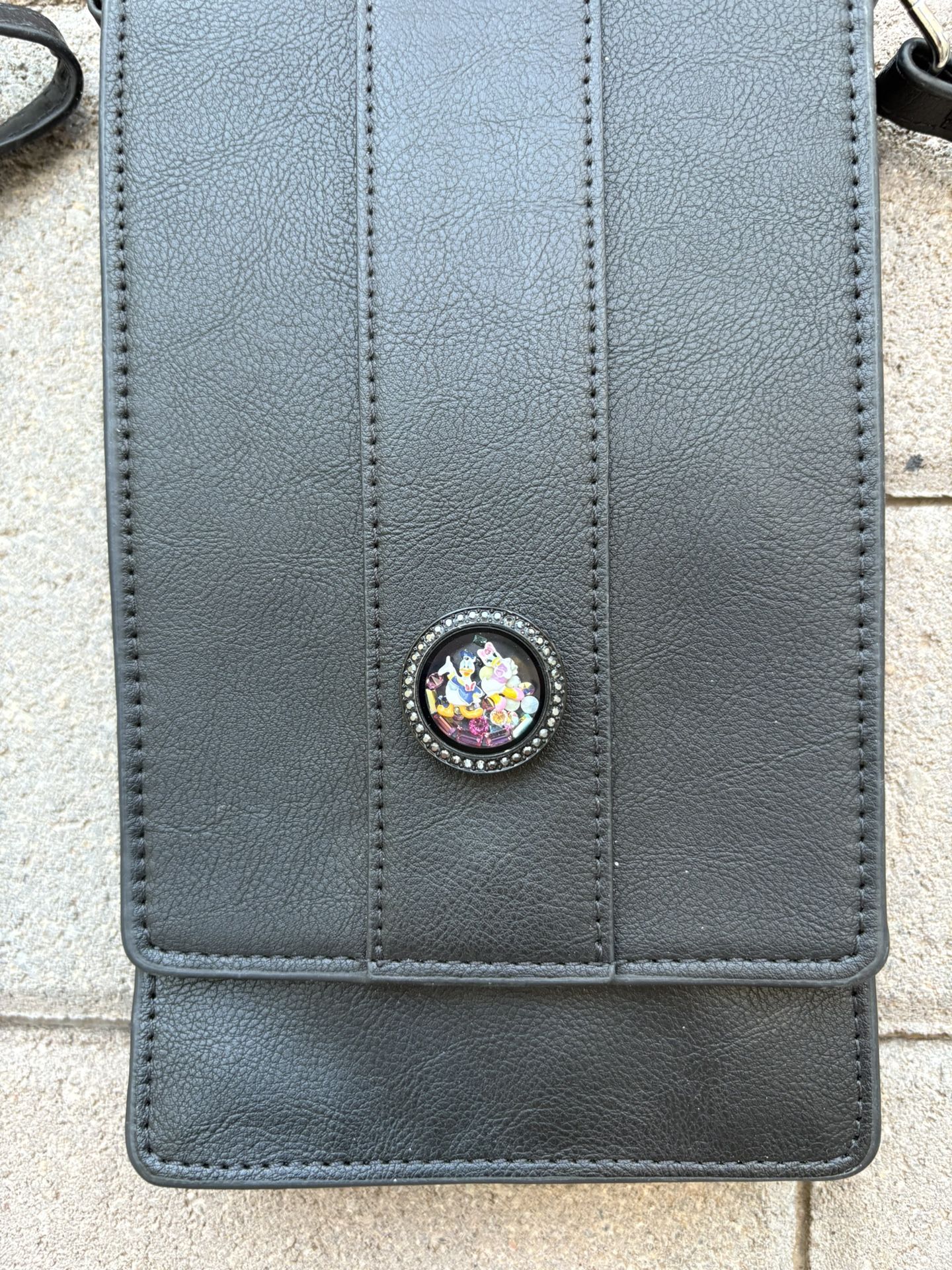 Origami Owl Black Cross Body Bag- Disney Theme Anywhere Phone & Card Case Purse w/ Living Locket Holder. That’s right! Origami Owl now has your new favorite Crossbody Anywhere Phone & Card Case! Not only will you get to carry around a fashionable bag, you will also get to tell your story with the attached Living Locket®! Add the Charms you want to share while being fashionable on your everyday errands. You’ll love the Pebbled Vegan Leather look and the Black finish will match all your favorite outfits. Material: Smooth Vegan Leather Finish: Polished Silver + Black Crystal info: 38x Jet Hematite Crystals Approx size: Height 8", Length 4.75", Depth 1.5", 24-27" adjustable strap Charms- Daisy & Daffy Duck with multicolored Swarovski Stardust Crystals New! Retails $72 Selling $25 FIRM