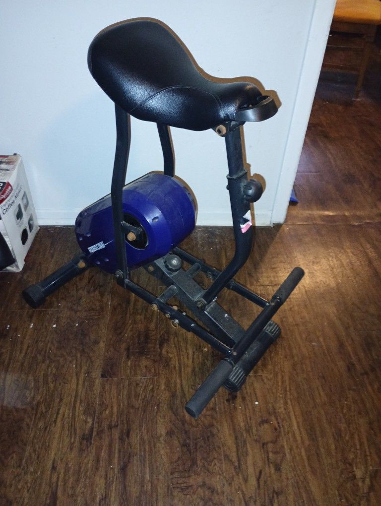 This is a Rodeo Core exercise machine designed for core strengthening workouts. It features a saddle-style seat and a sturdy metal frame, with a mechanism for simulating horseback riding motions.