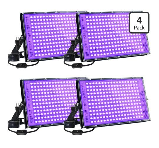 New 4 Pack 150W LED Blacklight, UV Black Lights for Glow Party, IP65 Waterproof Outdoor UV Floodlight for Black Light Party,Body Painting,Fluorescent Painting,Birthday Parties,Halloween