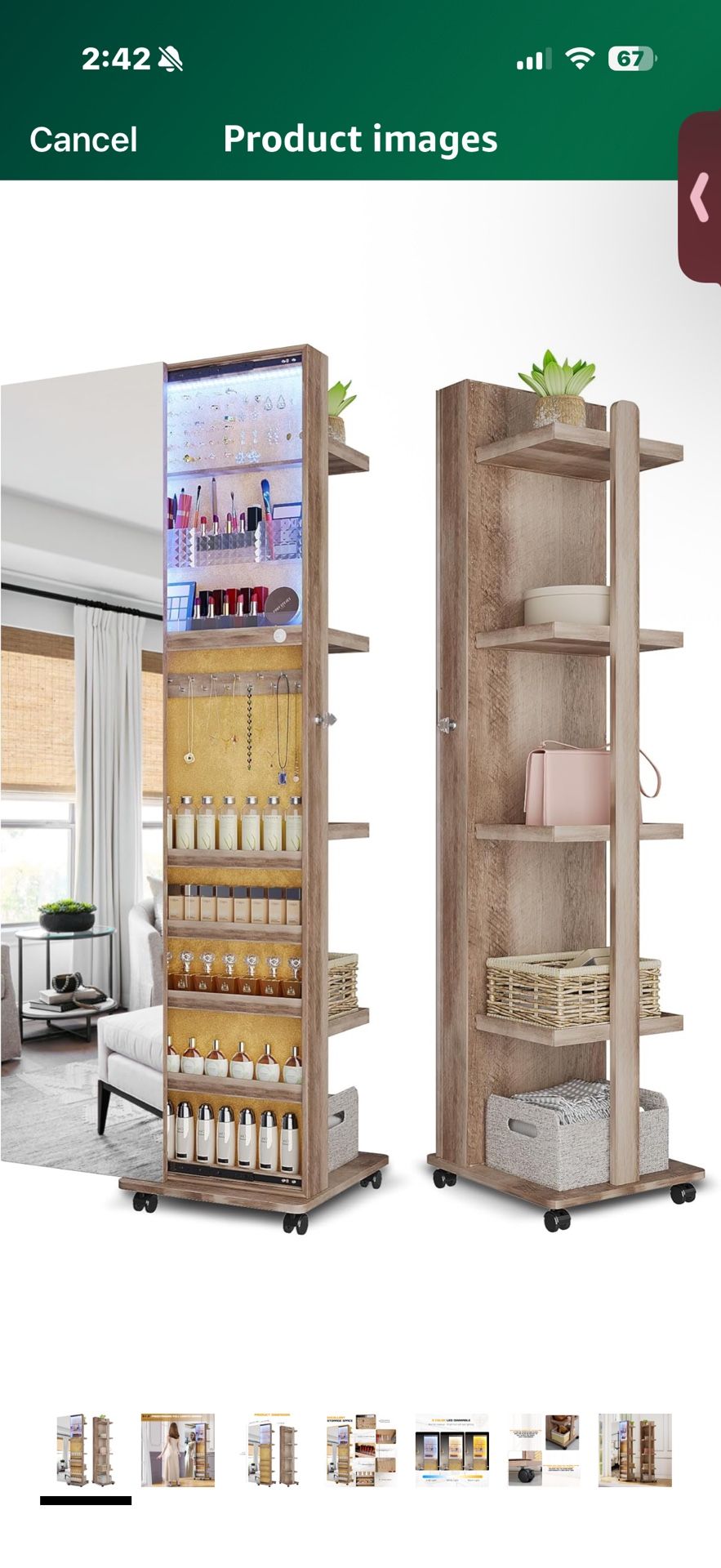 Lvifur 360° Rotating 63'' LED Jewelry Armoire,Full Length Mirror Large Capacity Floor Standing 3 Color Dimmable Jewelry Organizer Armoire with 4 rolle