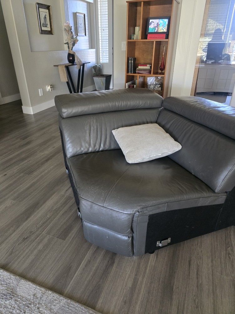 Italian leather corner sectional piece. Dark Grey. Normal wear. Must pick up.