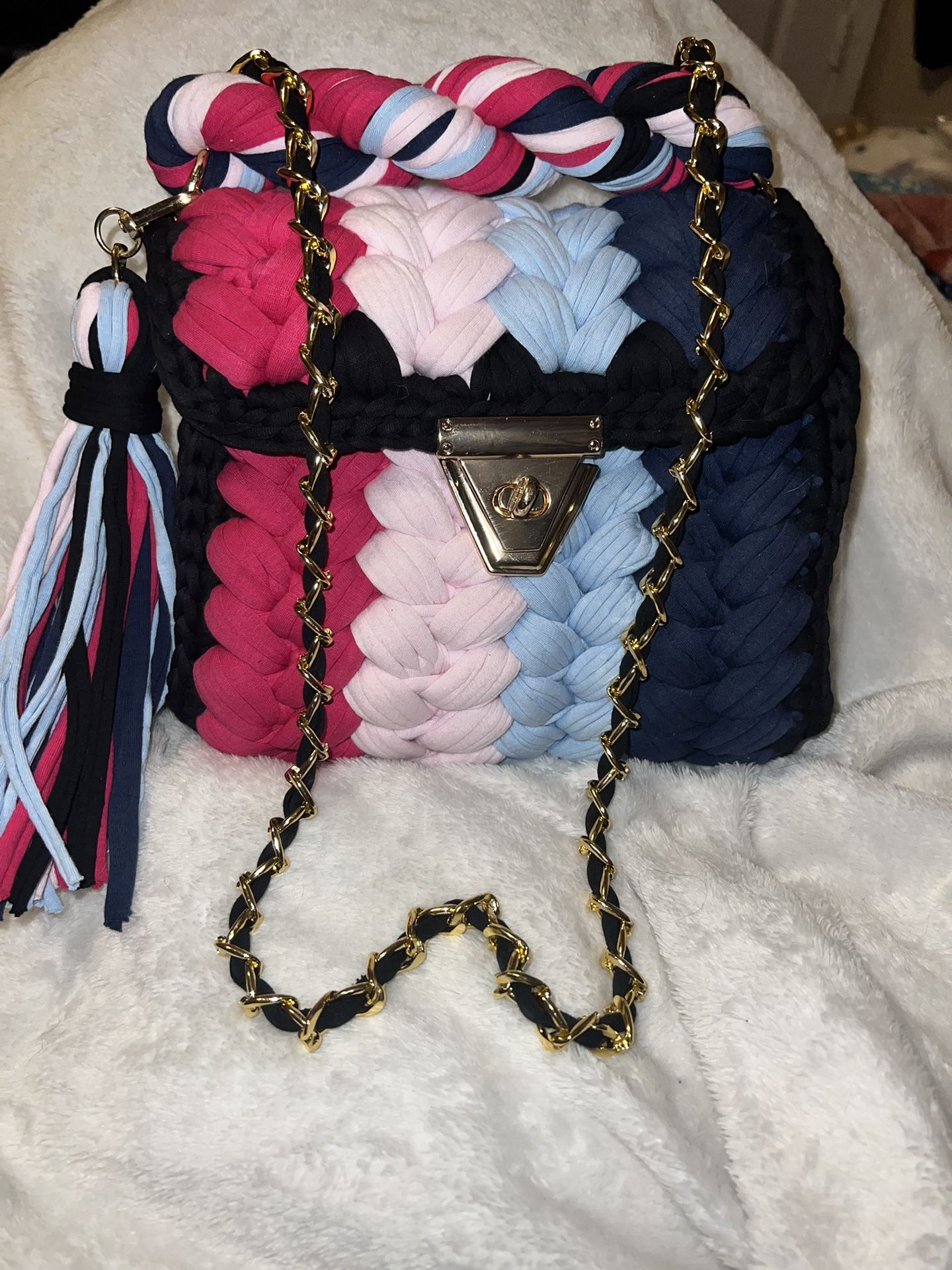 Hand woven multi color crochet shoulder bag