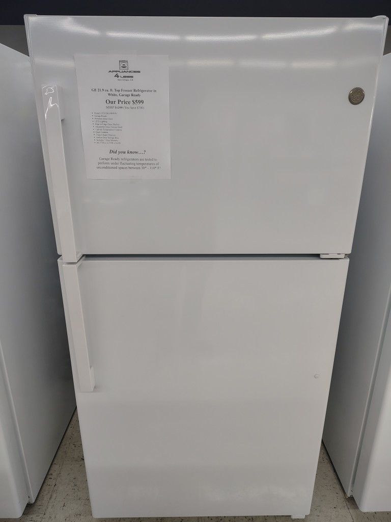 $599(MSRP$1299) GE Top Freezer Refrigerator With Crisper Drawers and Upfront Temperature Controls