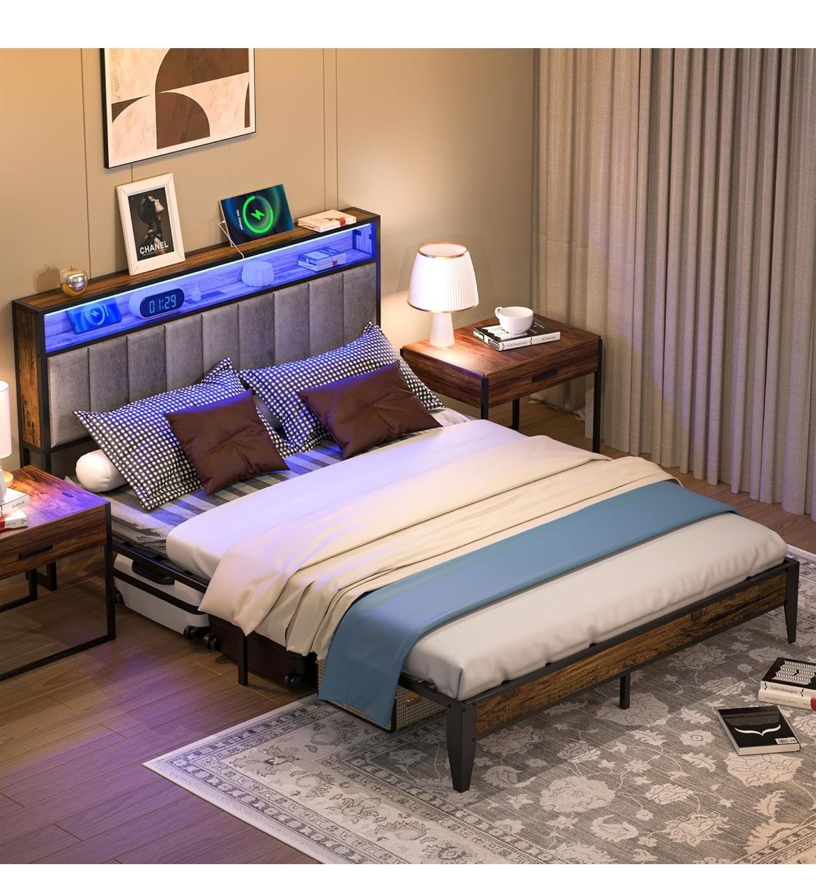 Bed Frame Queen Size, Metal Platform Bed Frame with Storage & LED New In Box