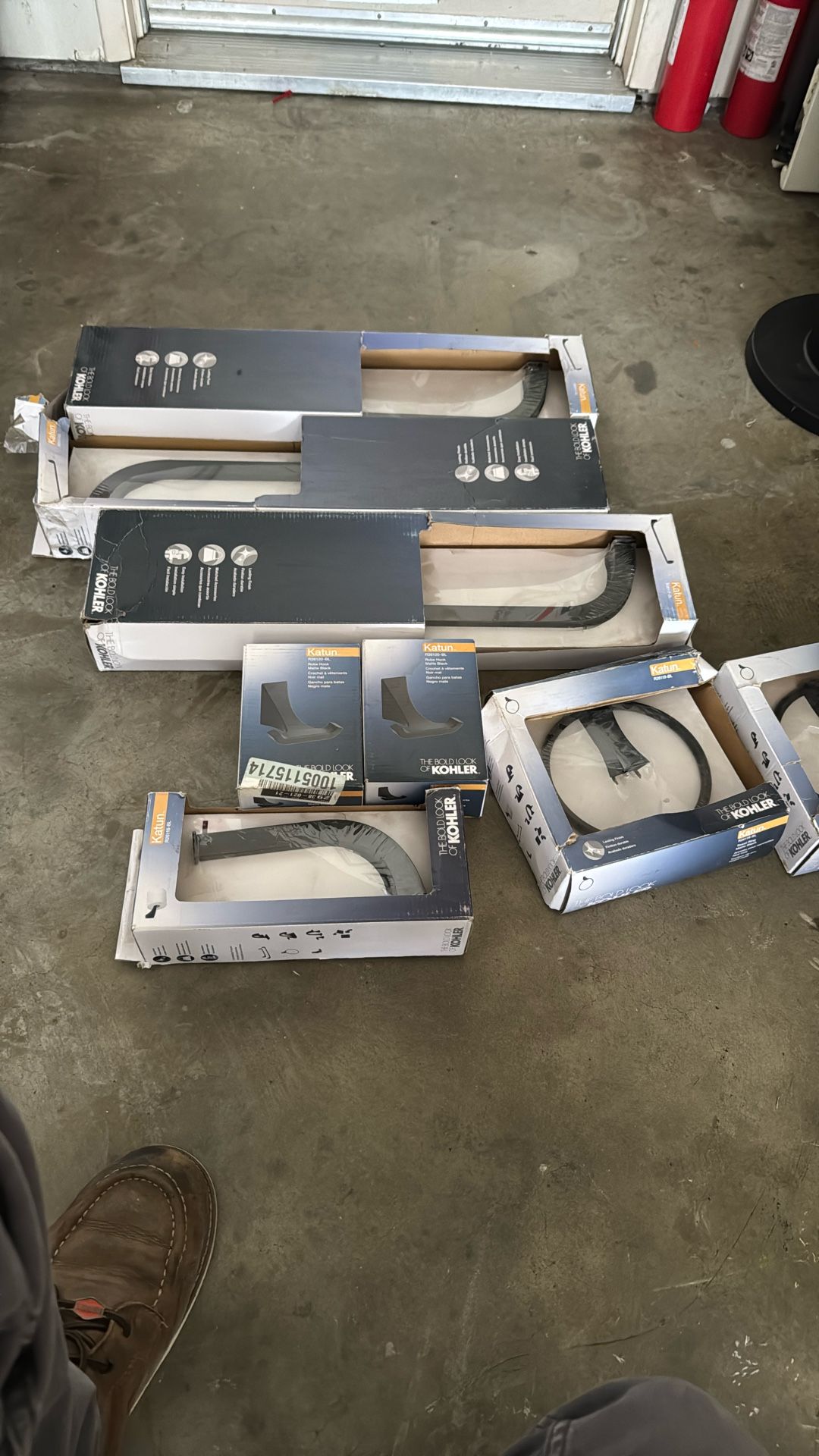 I have three towel bars, two robe hooks two towel rings, one toilet paper holder, Kohler KATUM