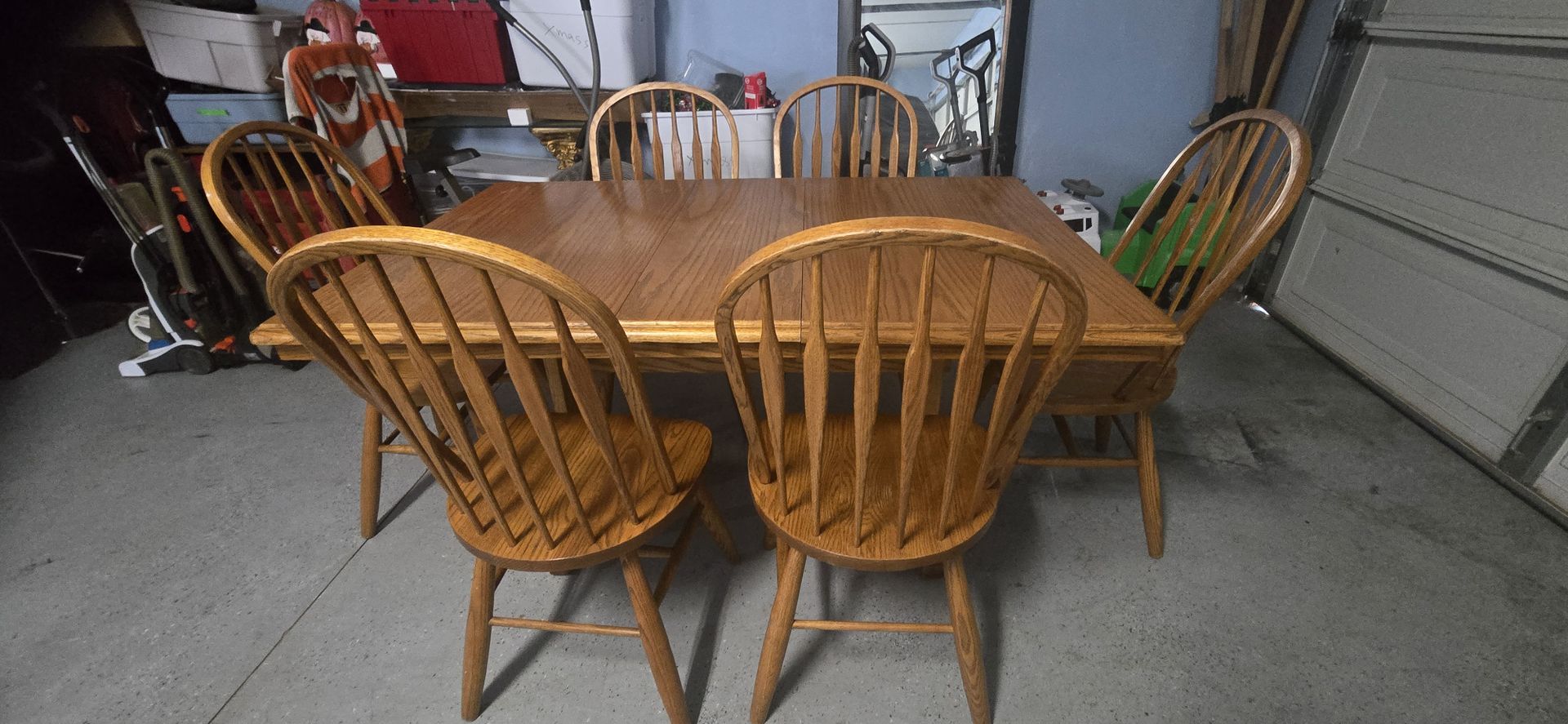 Very clean dinning room set, table with one extension, 6 chairs, very clean and sturdy, no scratch or damage
