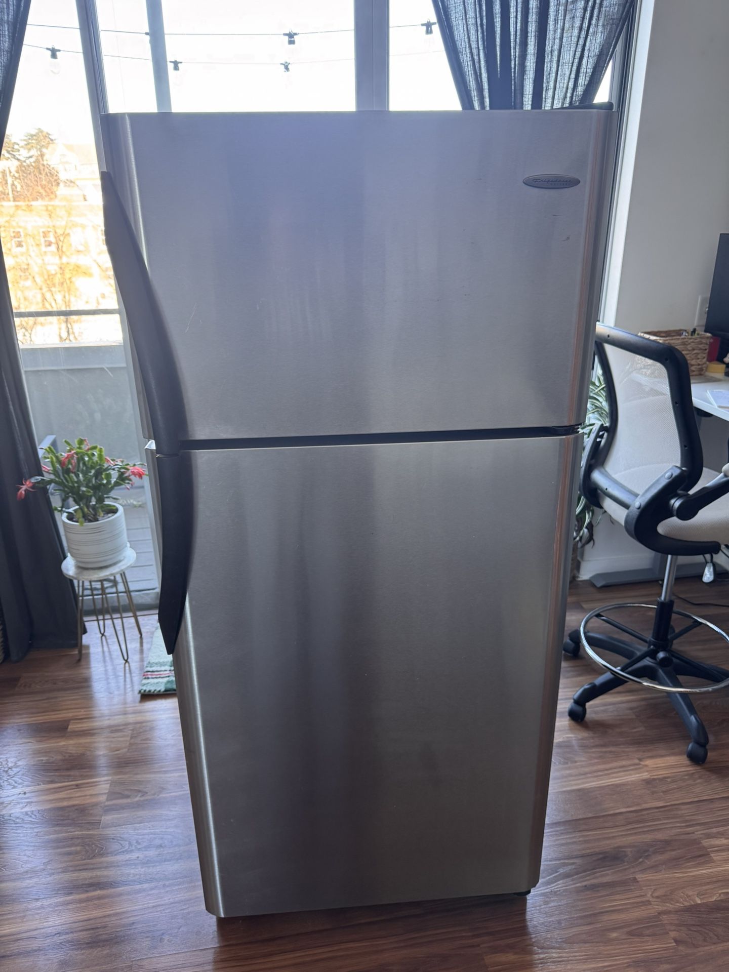Frigidaire stainless steel refrigerator Height 66in Width 30in Depth 30in Works great, purchased new appliances