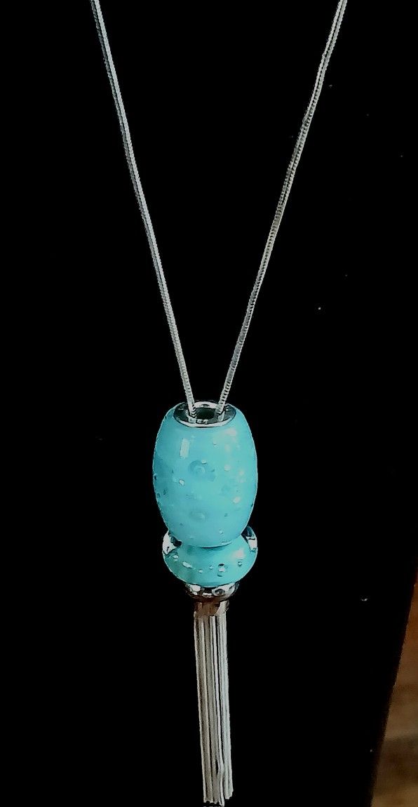 Fenton Art Glass beads on a sterling silver 22" necklace Sterling silver necklace and tassle.
