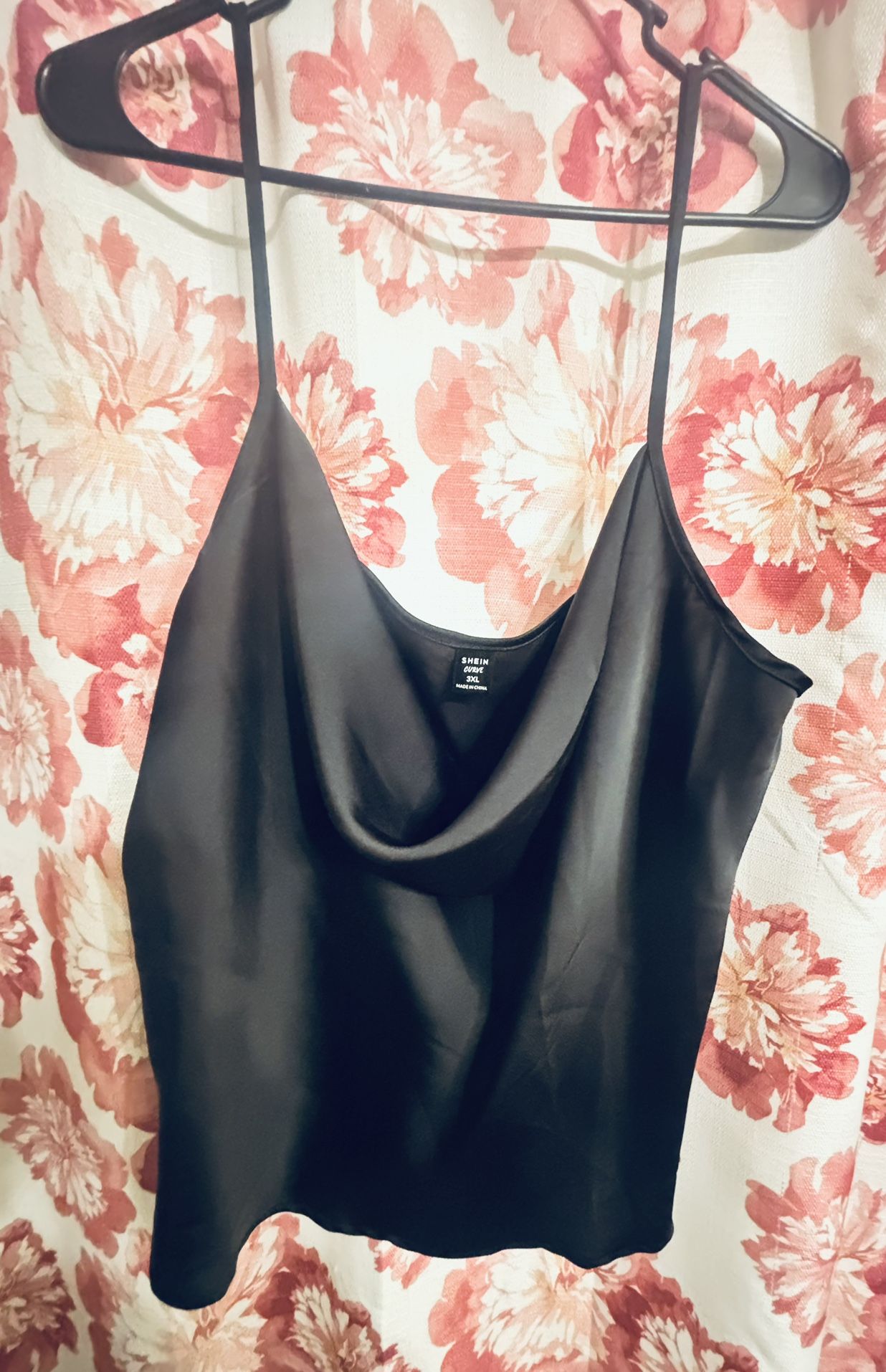 black satin top 100% polyester, short waisted size 3X SHEIN curve brand new never been worn or washed