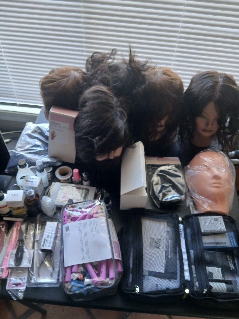 Dropped out of beauty school , not sure what to do with all the supplies , so I thought I'd post them. Manican heads female and male, complete nail set including dip and everything , hand and foot , to practice on, aesthetics kit with practice mannequin