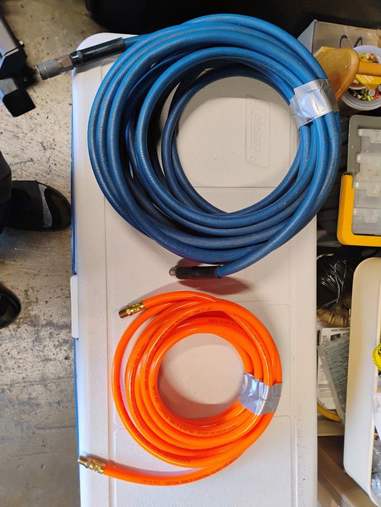 New or like new air hose in great condition. Asking 20 for the both. The blue hose is 50'.