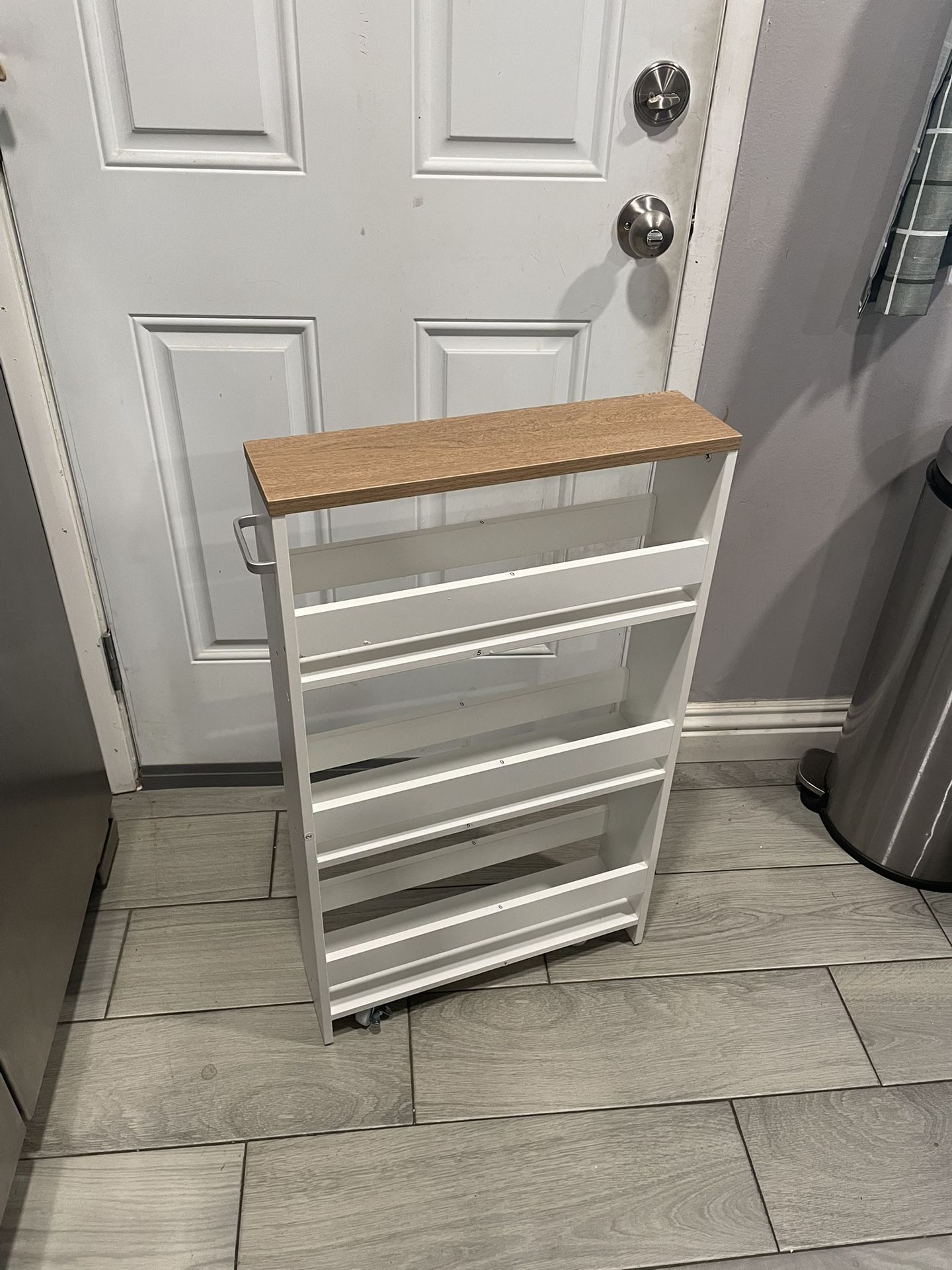 Small Kitchen Cart, 4-Tier Slim Rolling Island w/Handle, Laundry Room Storage Organizers Between Washer and Dryer, Narrow Spice Rack on Wheels Next to