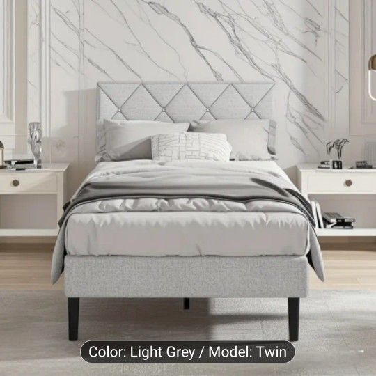 Twin Size Bed Frame, Upholstered Platform Bed Frame With Button Tufted Headboard, Mattress Foundation, Wooden Slats Support, No Box Spring Needed, Easy Assembly, Dark Grey