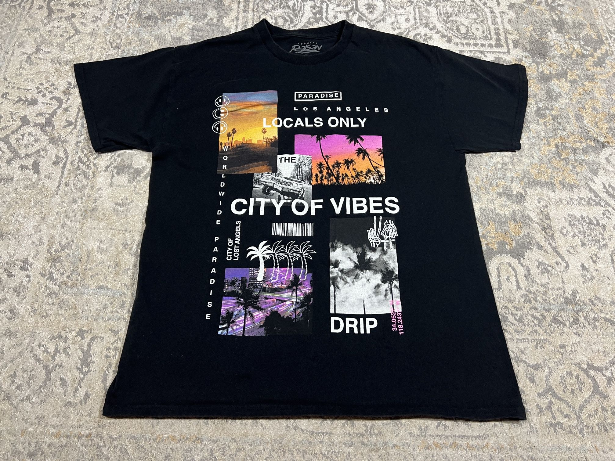 Popular Poison Mens Black T-Shirt City Of Vibes Graphic Print Size L
