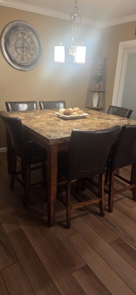 Kitchen table with 6 chairs and one server. The server is on good condition and the table set in fair condition.
