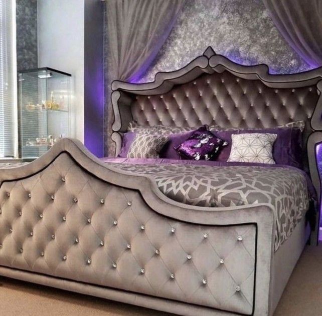 Gray velvet King Bed