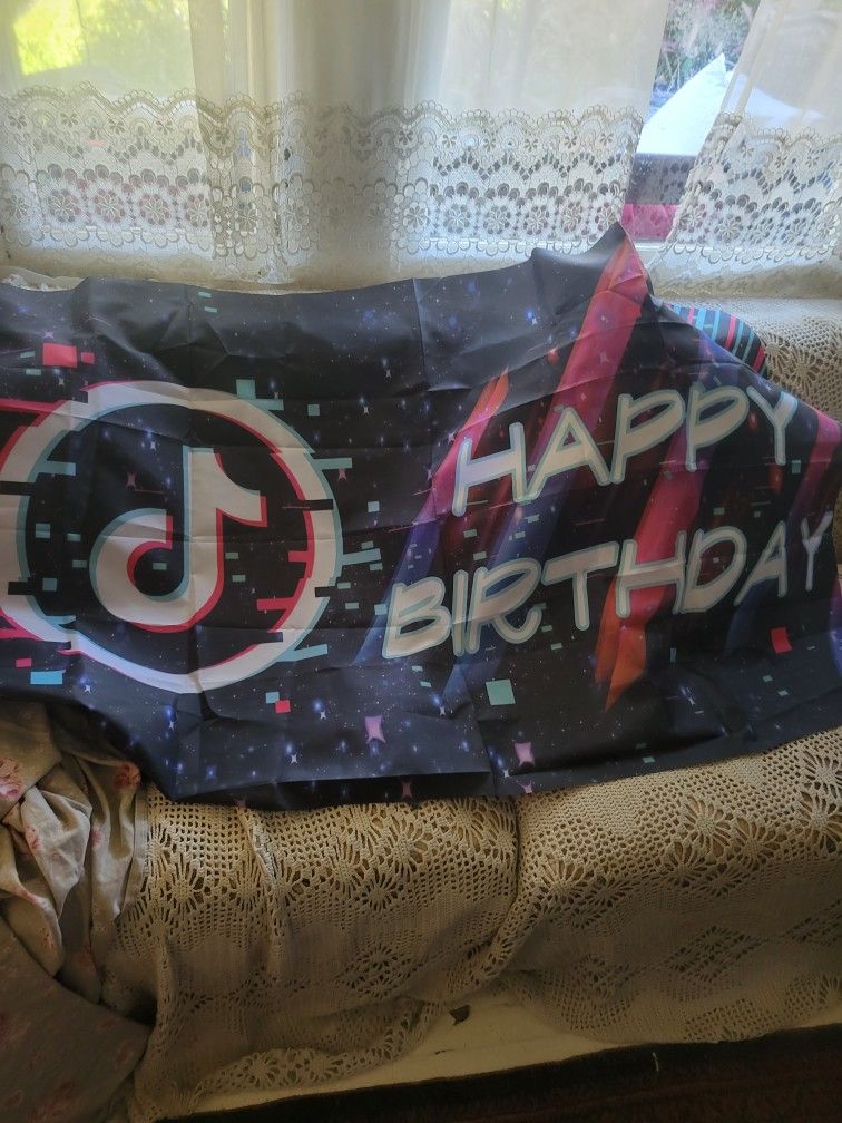 Backdrop , garland and balloons Pick up in downtown Riverside Tik tok party 30 balloons banner and garland..$15