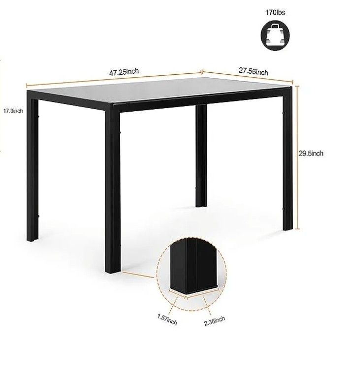 Glass Table for Dining Room, Black.ONLY TABLE!