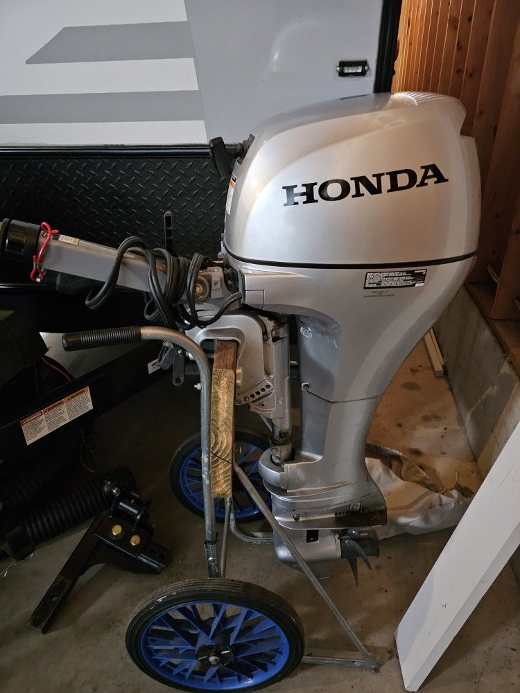 Original owner selling 8 hp long shaft outboard with electric start. Used as standby motor for 19 ft boat on Lake Chelan. Only used a couple of times. Price includes portable stand and gas tank.