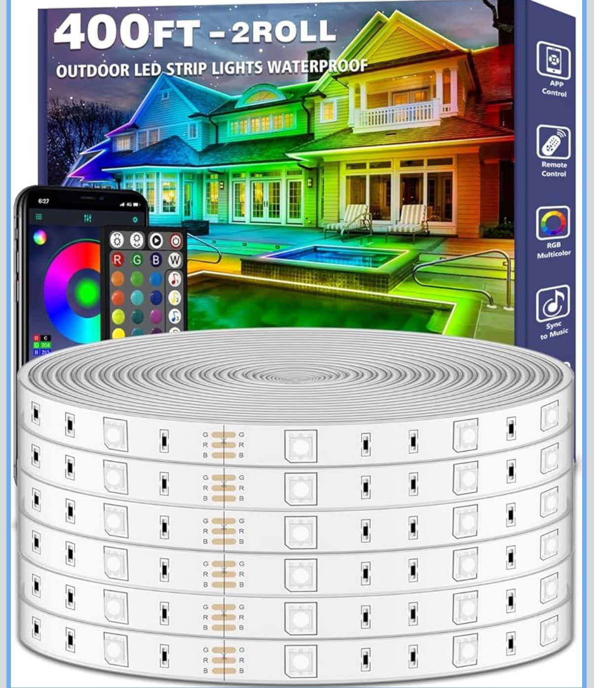 400ft Outdoor LED Strip Lights Waterproof,IP68 Outside Led Light Strips Waterproof with App and Remote,Music Sync RGB Exterior Led Rope Lights with Se