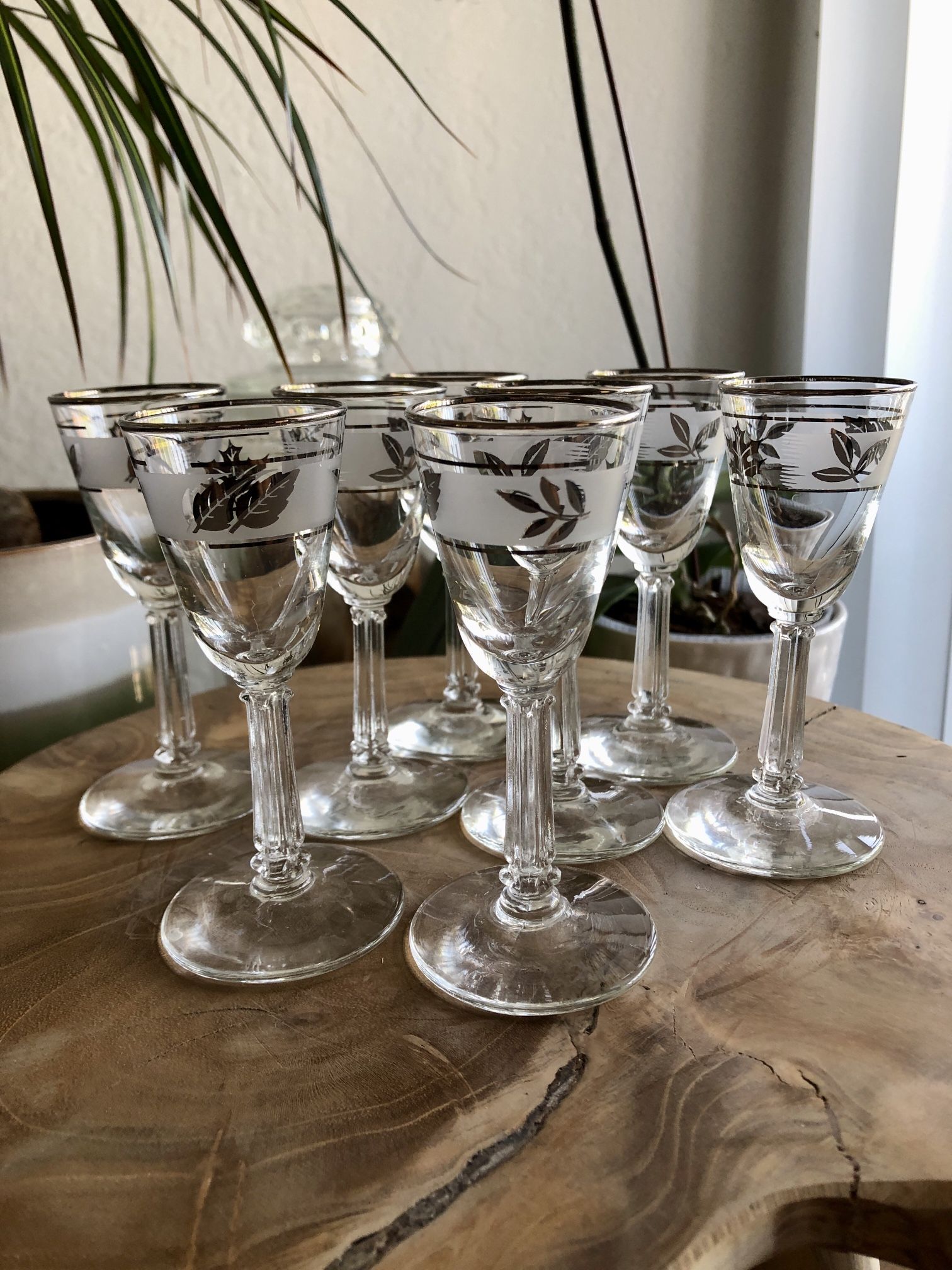 Vintage Libbey Cordial Glasses Silver Foliage Pattern Set Of 8 Hostess Glassware