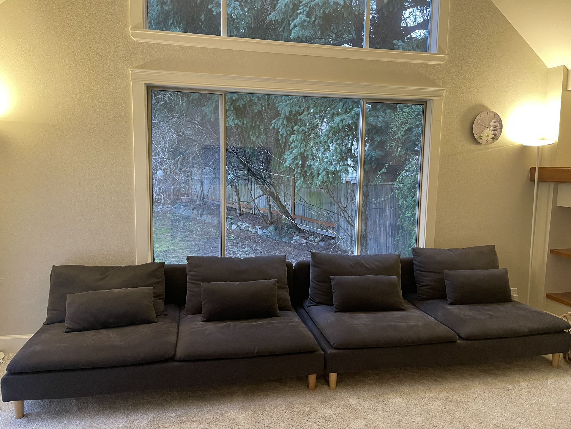 Free used Soderhamn couch. Probably can revive it with a fresh set of covers. Cushion not zipped to couch anymore.