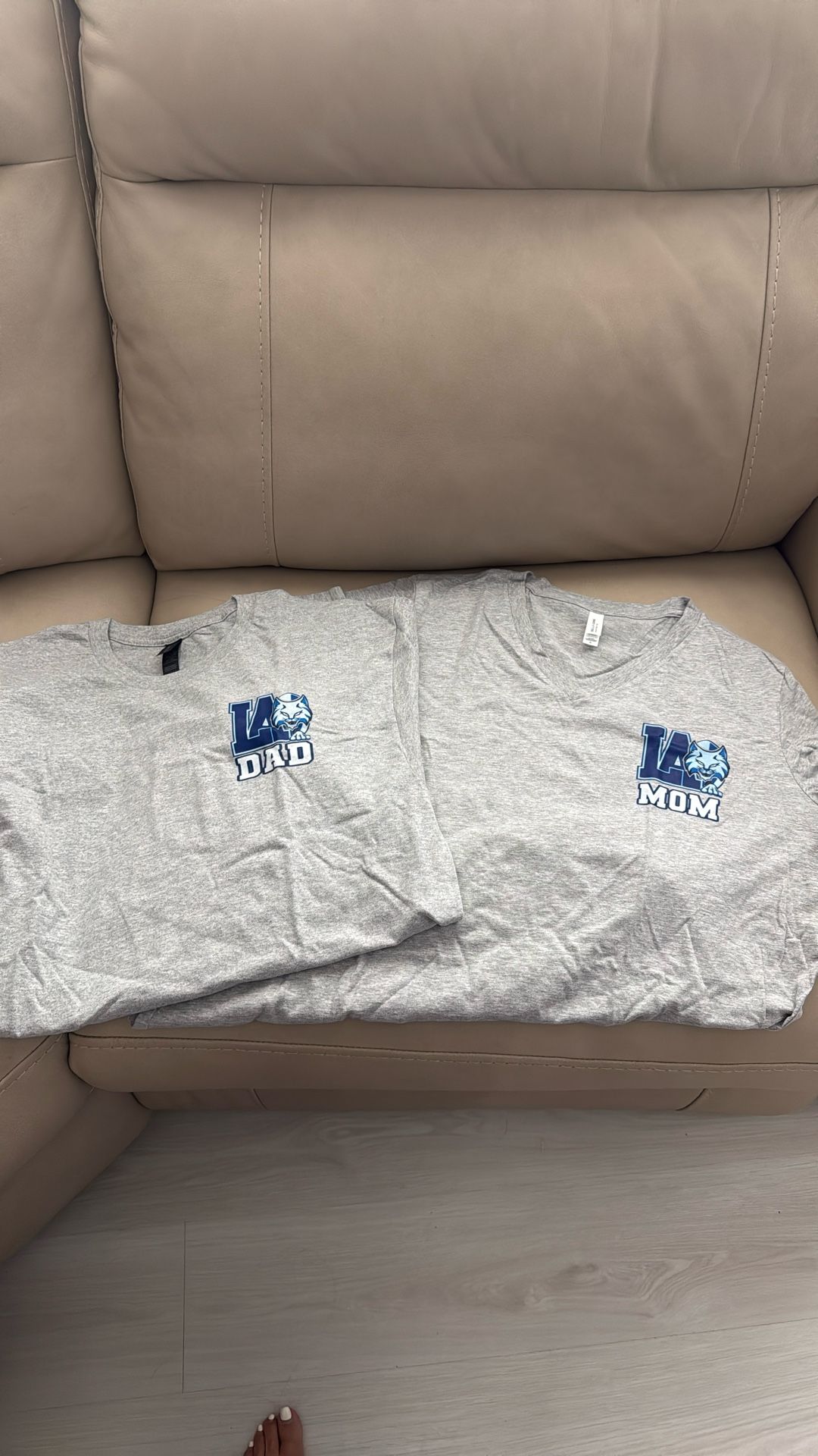 Brand new; never used. Our Lady of Lourdes Academy Bobcat mom v neck and dad crewneck gray shirts-gifted to us. Serious inquiries only. Both for $35.00.