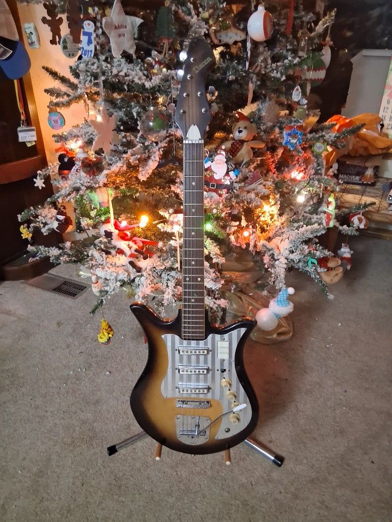 Vintage 1960's Teisco Decca Records Branded E-110 Del Rey Tulip Electric Guitar And Stand