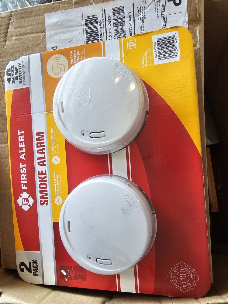 New pack of 2 first alert smoke alarms. 10 year battery life.