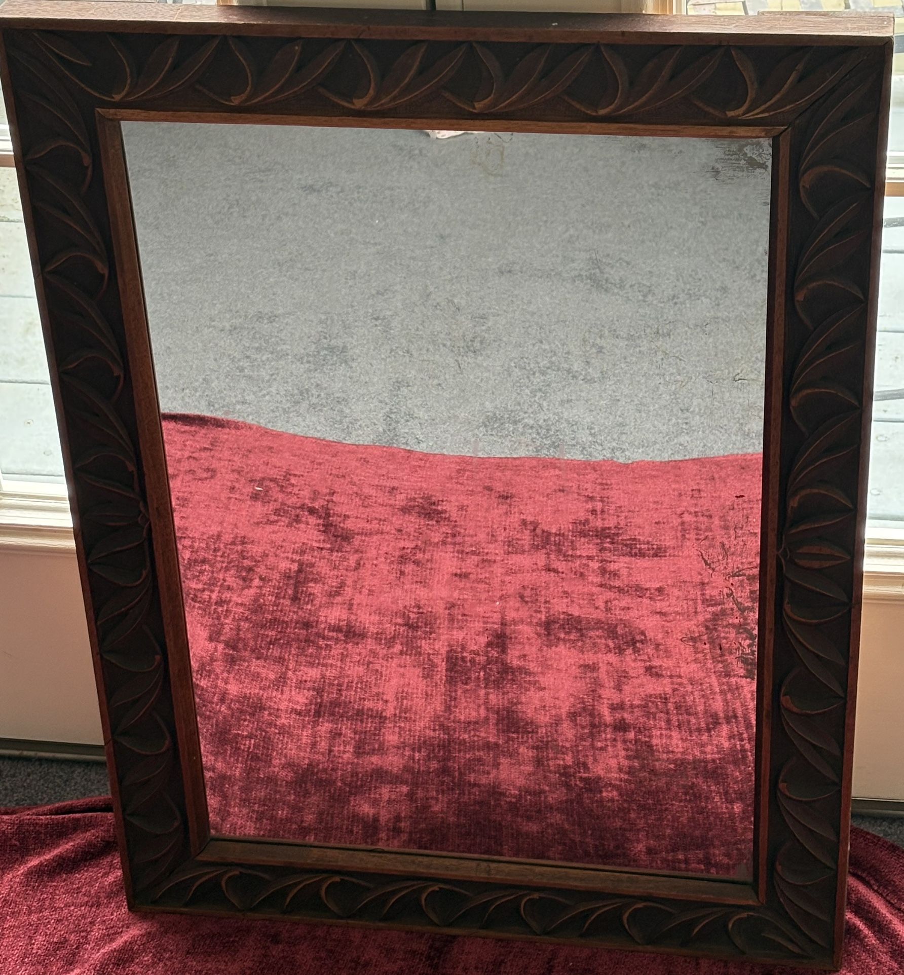 Beautiful Hand Carved Wood Vintage Framed Mirror 28" Tall