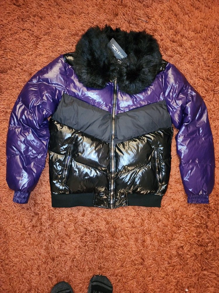 Mens Uptown Purple Black Puffer Coat Bubble Jacket Fur Eggplant Foamposite