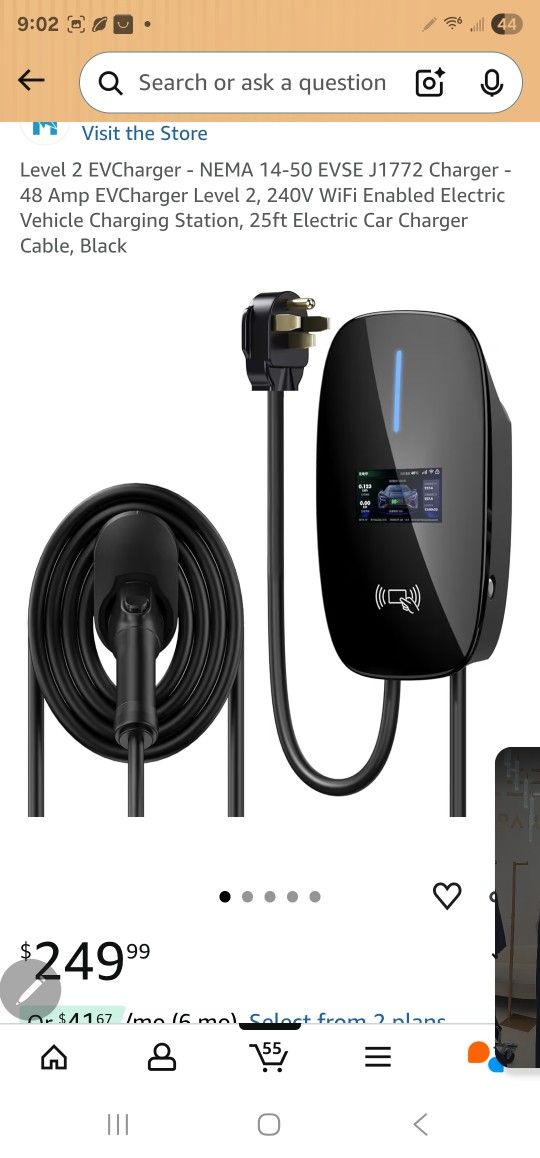 Level 2 EVCharger - NEMA 14-50 EVSE J1772 Charger - 48 Amp EVCharger Level 2, 240V WiFi Enabled Electric Vehicle Charging Station, 25ft Electric Car Charger Cable, Black