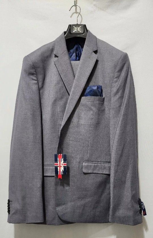 Soul of London Mens Gray Slim Fit 2 Piece Suit, 50R Jacket, 43R pants