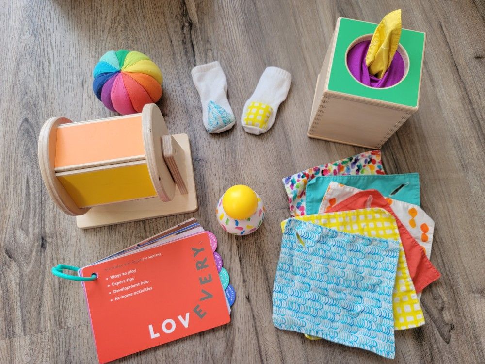 Great condition. Includes box, developmental guidebook, and all playkit items. Book not included. 5-6 months. Retail price $80